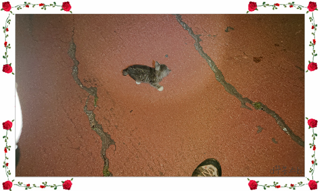 ↑↑너무 어려서 그런가 사람을 너무 잘 따르는겁니다. 졸졸~졸 따라오는데 만지지는 않았습니다..혹시나 사람손 타면 어미가 안데려 갈 것 같아서요...아가씨들이 어미가 왔다고 하길래 보니 반대편에 있던데 냥이가 자꾸 저나 아가씨들만 따라가니..이것참..~~~ 그런데 냥이 눈 상태가 정말 안좋았습니다..아~~ 어떻게 해줄 수도 없었고...결국 어미곁으로 갔지만 아기냥이가 잘 살지는 의문이었습니다...