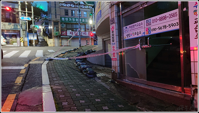 ↑↑산복도로에 위치하다보니 장대비가 내려도 고이지는 않지만 정말 겁나게 쓸고 내려갑니다.