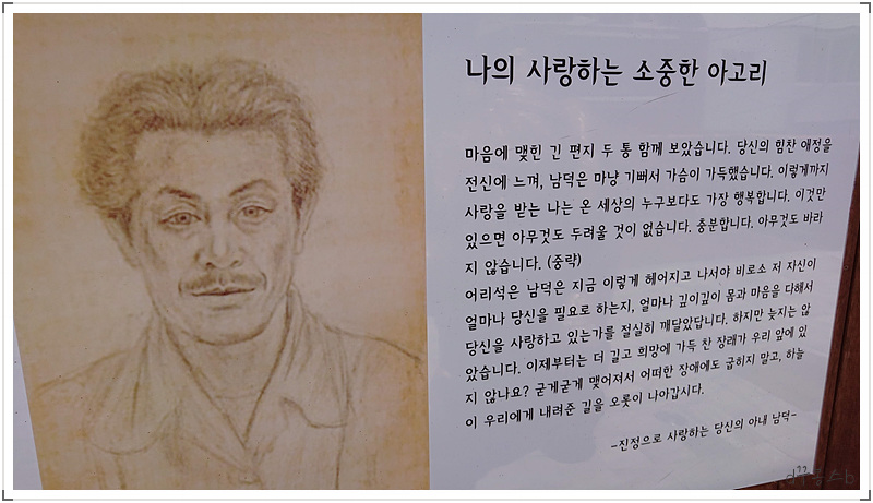♥ 이중섭화가는 40 살다 가셨죠. 1950년대 전쟁 후라 모든 국민들이 그러했듯 다들 힘겹게 살던 시절이었습니다. 생활고에 부인과 아이들은 일본으로 들어가고 홀로 외로움을 견디고 작품 활동을 한 대향 이중섭 선생의 삶이 희망 100계단에 고스란히 남겨져있습니다. 서두에 말씀드렸던 위에서 아래로 내려오라고 했지만 밑에서 위로 가는 것도 나쁘지 않을 듯합니다. 조금이라도 그분의 힘겨운 삶을 느끼고 싶다면은요...