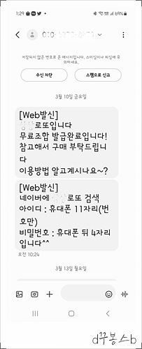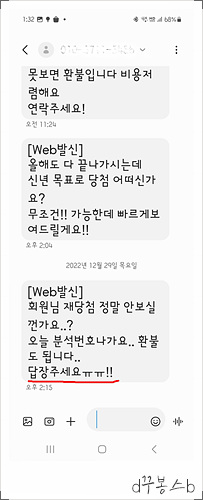 ▶ 2023년 3월 10일 금요일 또 한통의 문자를 받습니다.
