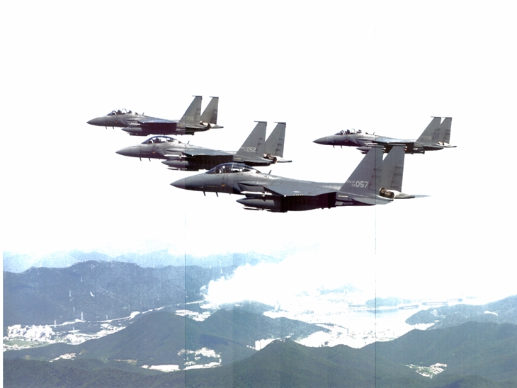 상시 전비태세를 갖춘 공중전투사 전력이 일치단결하여 완벽한 영공방위 임무를 완수함을 표현