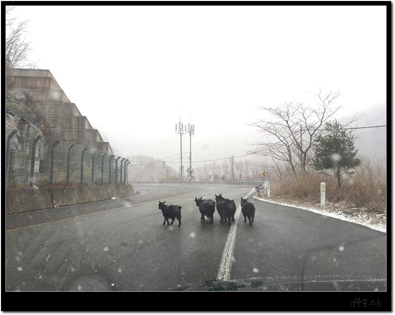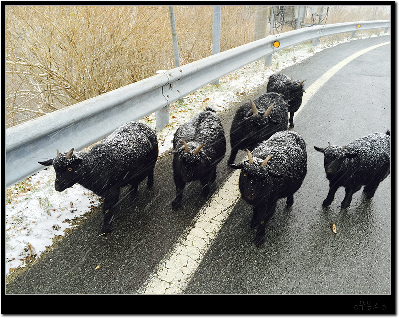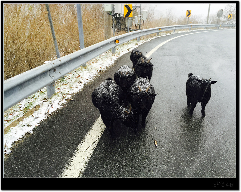 ■ 잘 가고 있는 흑염소를 제가 막아선 겁니다. --;; 하도 귀여워서 살짝 촬영한다고요. 흑염소 가족들 엄청 얌전했습니다.. 아웅 귀여워~
