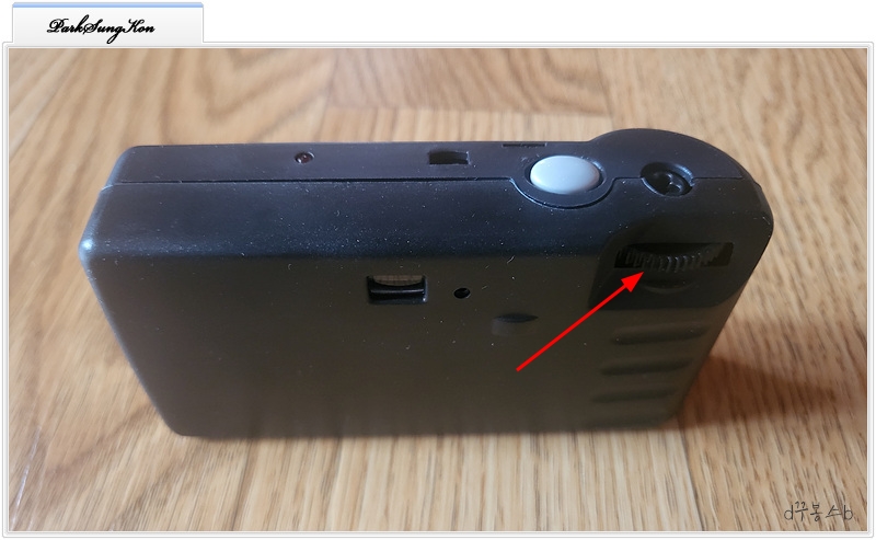 ★ 카메라 사용법은 화살표에 보이는 톱니바퀴를 오른쪽으로 돌립니다.. 즉, 필름을 돌리는 거죠. 계속 돌리다 보면 딸깍 소리가 나요. 그러면 바로 촬영 가능합니다. 예전에는 이것도 자동으로 돌아갔는데... 돌리는 방식은 정말 옛날 방식.ㅋ