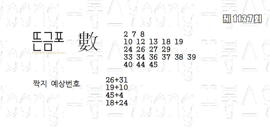 ♨ 이번 회차에는 뜬금포 수 같이 올립니다..따로 포스팅 작성 할 시간이 없어서요. 이번 회차 단번대 초강세에 깜딱 놀랬네요. 몰림수가 심하면 역시나 성적은 저조할 수밖에 없습니다. 장기 미출수 5번의 출과 더불어 연타석 몰림수 속수무책 었네요. 생각 외로 길어지는 4 끝수와 0 끝수 끝날 때 됐는데..~ 역시나 18번의 출현여부 이번회차에도 이어집니다.