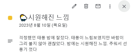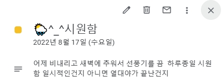 ↑↑ 8월 9일에 태풍이 왔어요.