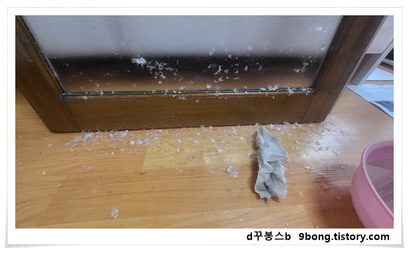 ↑↑ 기존 붙어 있던 뽁뽁이를 떼어내니 저런 똥이 양껏 묻어 있더군요.. 매년마다 갈아주고 해야 하는데 너무 귀찮아서...ㅋ 문제는 저걸 깨끗하게 긁어내야겠죠.. 이게 일이더군요.