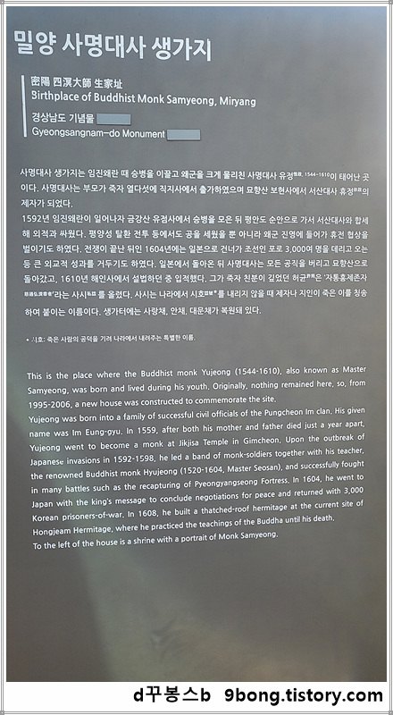 주소가 경남 밀양시 무안면 사명대사생가로 681 경위도는 35.498377 128.603357