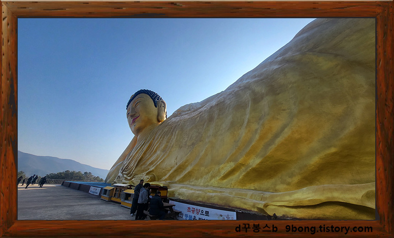 ↑↑ 불상을 받침 하는 좌대의 길이가 120m, 불상의 길이는 82m, 높이가 21m 발의 높이만 해도 건물 3층 정도라고 한다.