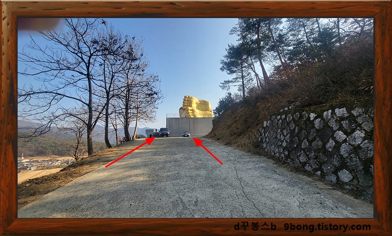 ↑↑ 와불상 입구쪽에 공터가 있습니다. 여기에 주차하시면 됩니다. 걸어서 올라가야 하는데 경사가 제법 됩니다.