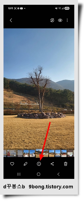 ♣ 스마트폰에서 사진을 찍을 때 위치태그가 설정되어있으면 모든 사진에 위치 정보가 들어갑니다. 사진을 클릭하면 어디서 촬영했는지 알 수가 있죠..(구글어스에서 자주 사용하죠) 그런데 sns나 공문서를 보내야 할 때 개인정보가 엄청 찝찝하죠(어디서 사진 찍었는지 다 나오니까).. 그럴 때 사진에서 위치정보를 삭제해야 합니다. 밑에 사진을 보고 그대로 따라 하시면 됩니다.