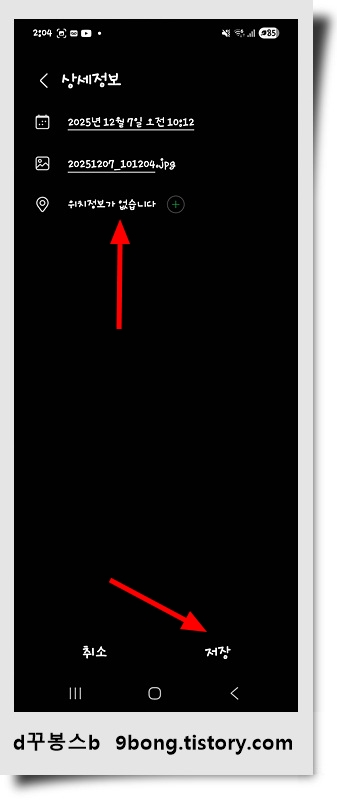 ↑↑ 위치정보가 없습니다..나오죠..반대로 위치 정보를 넣을 수도 있습니다. 여기서는 삭제하고 마지막으로 맨 밑에 '저장'을 클릭하시면 끝입니다.!!!