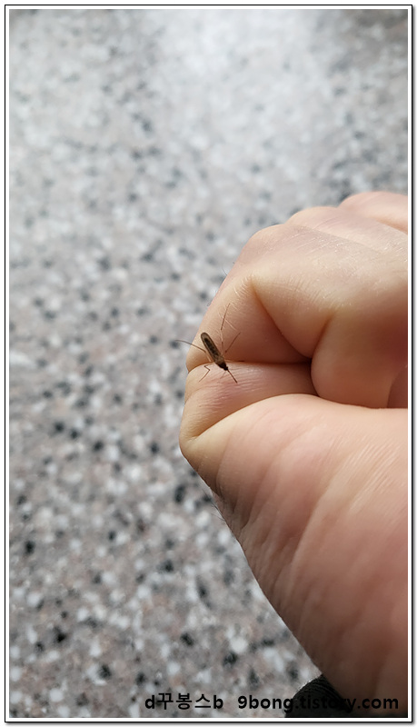 목욕탕 벽에 붙어 있는 모기.. 아직 몸 상태가 덜 풀린 거 우리 다 알자나요.. 아주 자신감 있게 손으로 낚아채듯이 던졌더니..ㅋㅋ