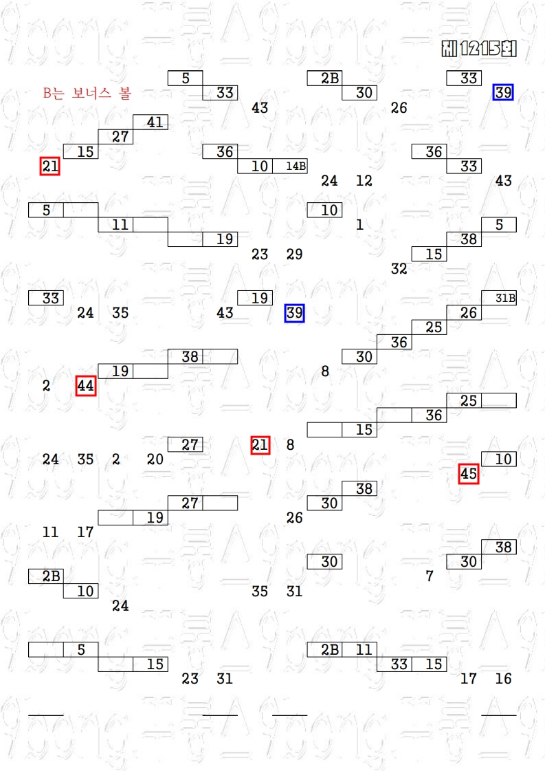 ♥ 초창기 멤버들에게만 20 조합을 보내줍니다. 역대 결과물을 보면 4등만 가끔 나옵니다. 그냥 참고만 하세요. 1216회 예상수 (계단파)㈜ 권장해상도 태블릿 PC, PC화면 (스마트 폰으로 보시기에는